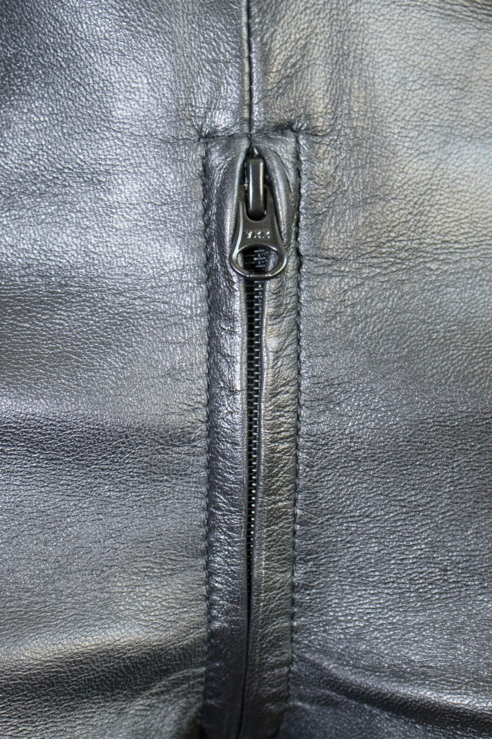 Spodnie skórzane z dwustronnym zamkiem wzdłuż linii ciała